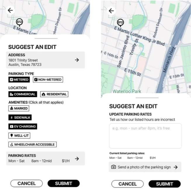 Suggest a Change – Simple, guided edit tools to let users update outdated or inaccurate parking info.